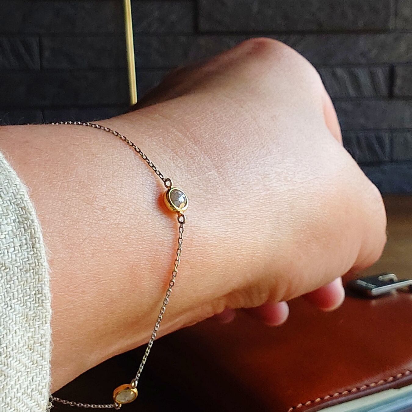 それぞれ異なる色合いと表情をもつローズカットのグレーダイヤをあえて組み合わせ、K18とプラチナで仕立てた3石のブレスレットです。